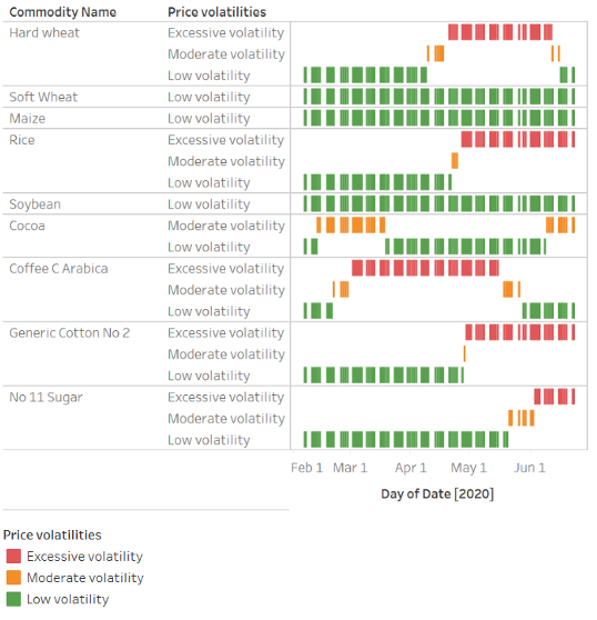 The Food Security Portal captures agricultural market variability through its Excessive Food Price Variability Early Warning System, which is updated on a daily basis. Through this system, price fluctuations in agricultural futures markets are closely monitored, and a timely measure of excessive price variability identifies periods of unusual price variability.