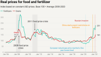 The outbreak of the war in Ukraine sent fertilizer prices soaring to all-time highs as prices for natural gas, a key feedstock for nitrogenous fertilizer production, drove production cutbacks and sanctions and export restrictions disrupted exports. These drivers of market turmoil intensified fears of reduced global food production and higher food prices. While global supply continues to rebound and prices abate, risks linger and monitoring market developments remains key.
