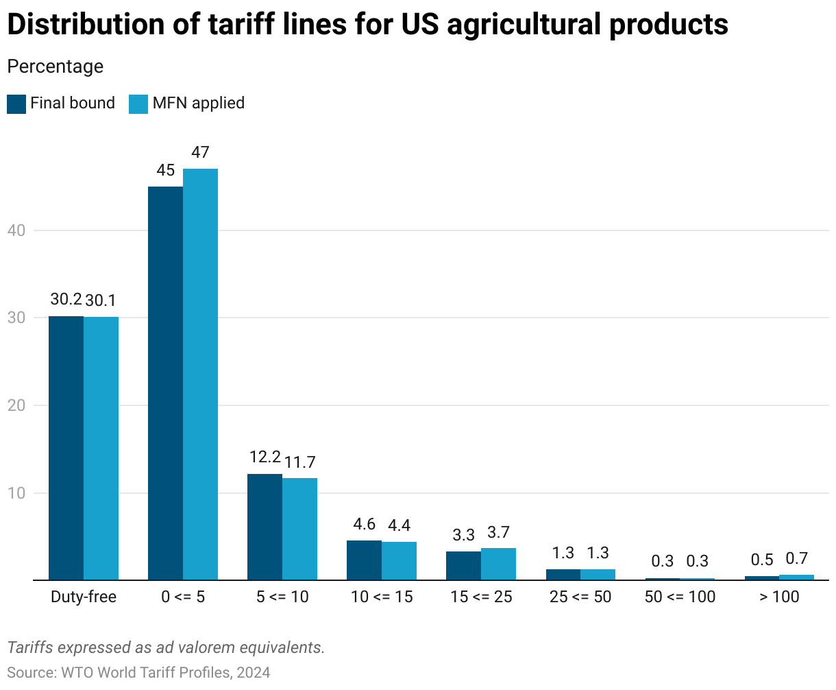 In 2018, some of America’s largest and most significant trading partners imposed retaliatory tariffs on U.S. agricultural exports—including Canada, China, the EU, Mexico, India, and Türkiye. Those measures affected U.S. agricultural exports worth an estimated nearly $30 billion in 2017, including livestock, dairy products, horticultural products, specialty crops, processed foods, beverages, tobacco, and cotton.