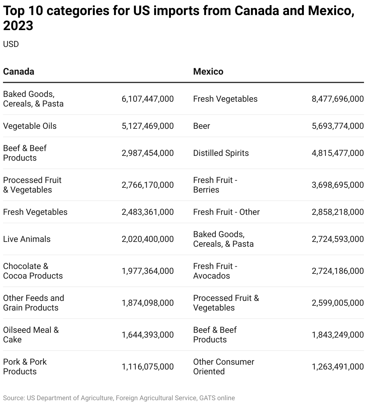 While the U.S. market is less important for large exporting countries such as Argentina (3% of total agricultural exports) and Brazil (4% of total agricultural exports), the United States remains a significant buyer, particularly for certain commodities. For example, U.S. imports of Brazil coffee exceeded $1.7 billion in 2023, while imports of orange juice from Brazil were almost $700 million.