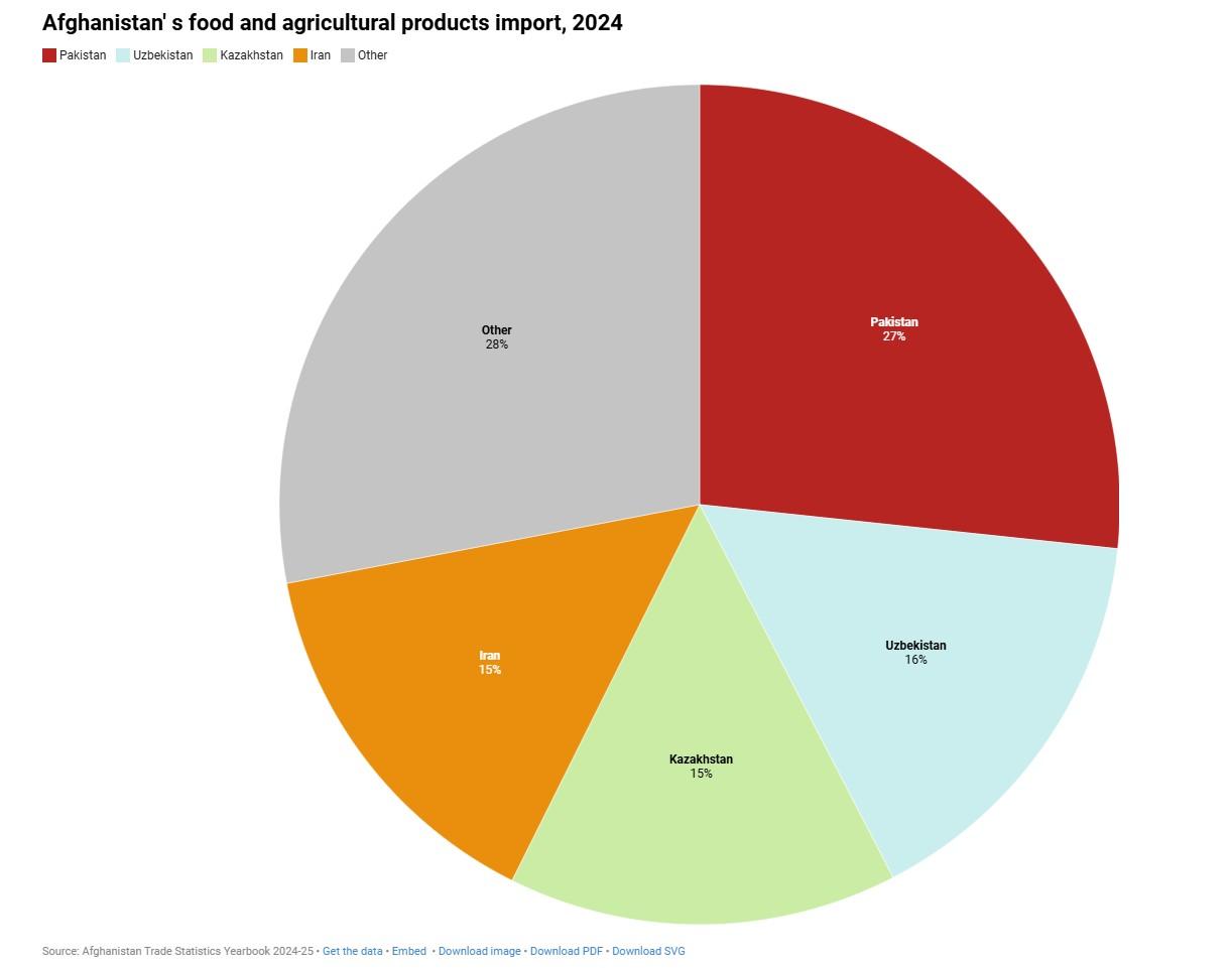 Under ordinary circumstances, Iran would partially offset these disruptions by expanding exports to Afghanistan and facilitating access to alternative trade routes. Iran is Afghanistan’s largest trading partner, with bilateral trade exceeding $3.2 billion annually, accounting for approximately 30% of total imports and around 15% of food imports.